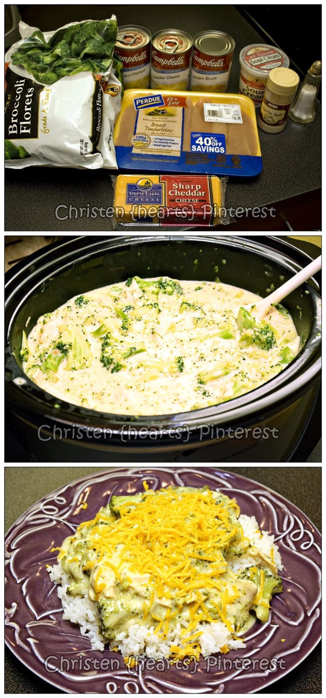 Creamy Crock-pot Chicken and Broccoli Over Rice Not bad, it makes a TON! (measurements are not my strong suit) I would cut down on the broccoli next time. Things to make with the leftovers: Fritatta (egg, broccoli mixture, rice, ketchup, onion, garlic, lemon juice. Really tasty!); Fried Rice; Quesadilla