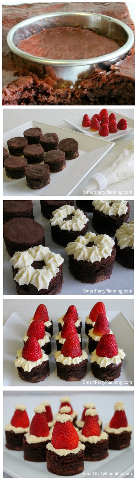 Here’s a healthy holiday treat that will bring a smile to your face. Delicious low fat brownies topped with healthy strawberries and whipped topping make easy Santa Hat Brownies that everyone will love.