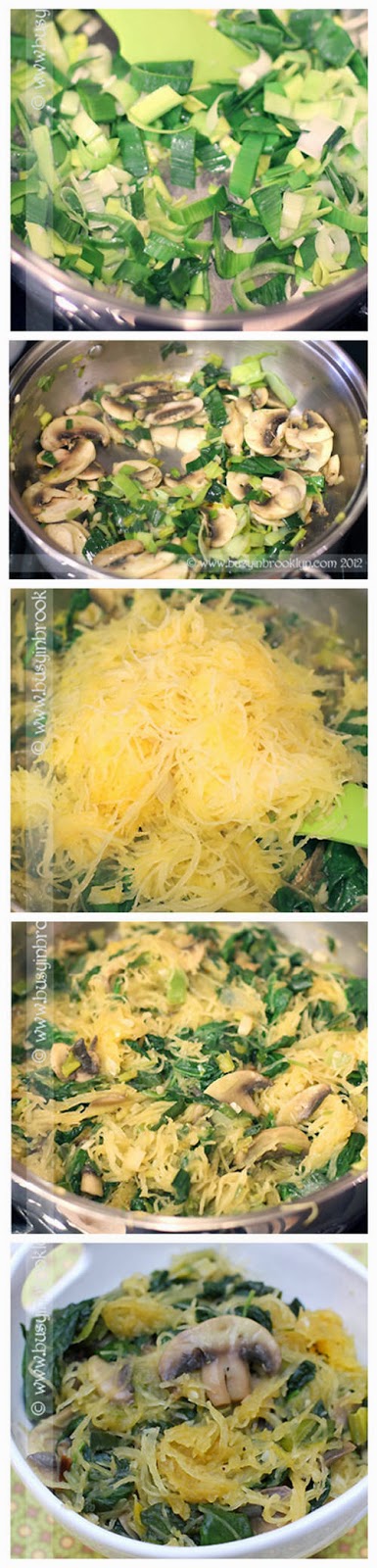 Spaghettti Squash with Sauteed Spinach & Mushrooms