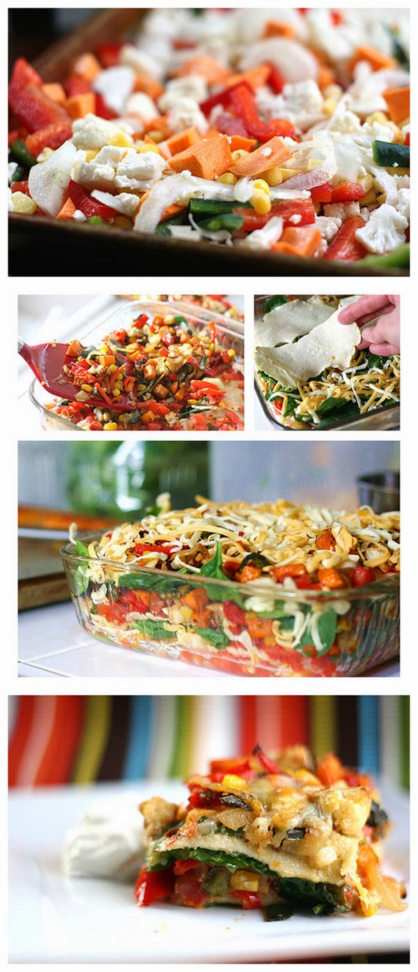 If you normally consider Tex-Mex cuisine unhealthy, think again. This dish is basically a huge pan of roasted vegetables, divided into layers with corn tortillas, raw spinach, a sprinkling of cheese. Make it even healthier with fresh homemade tortillas and part-skim cheese.