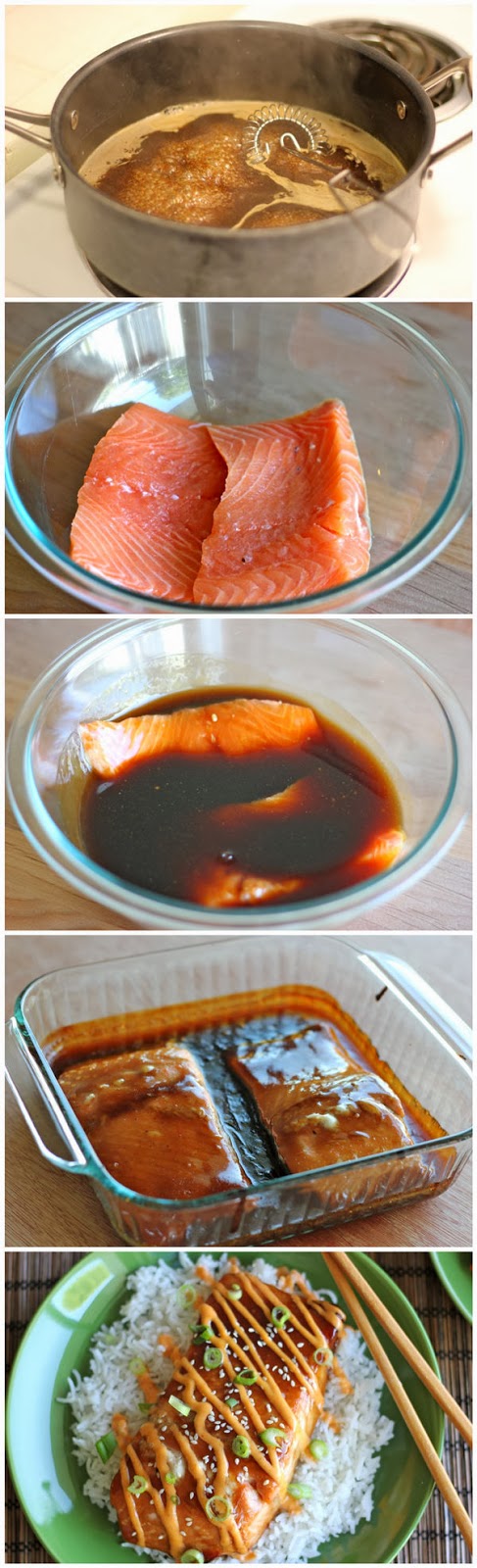 Teriyaki Salmon with Sriracha Cream Sauce – An easy dish with homemade teriyaki sauce and a sweet and spicy Sriracha cream sauce!